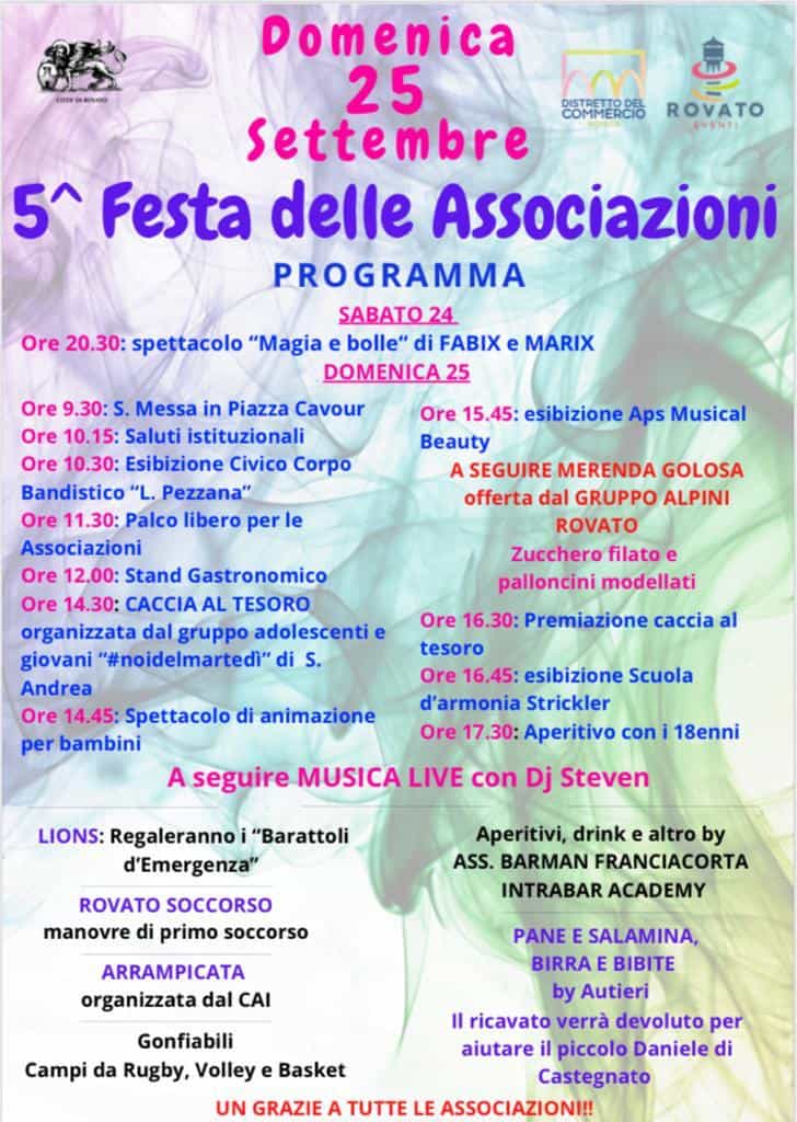 Domenica 25 settembre 2022 in Piazza Cavour va in scena la quinta Festa delle associazioni di Rovato. L’amministrazione di Rovato e le sue associazioni propongono anche quest’anno questa lodevole iniziativa dedicata alla propria comunità.